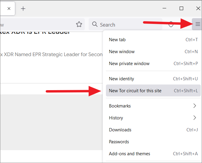 To do that, click the hamburger icon and select the ‘New Tor circuit for this site’ option from the menu that appears.