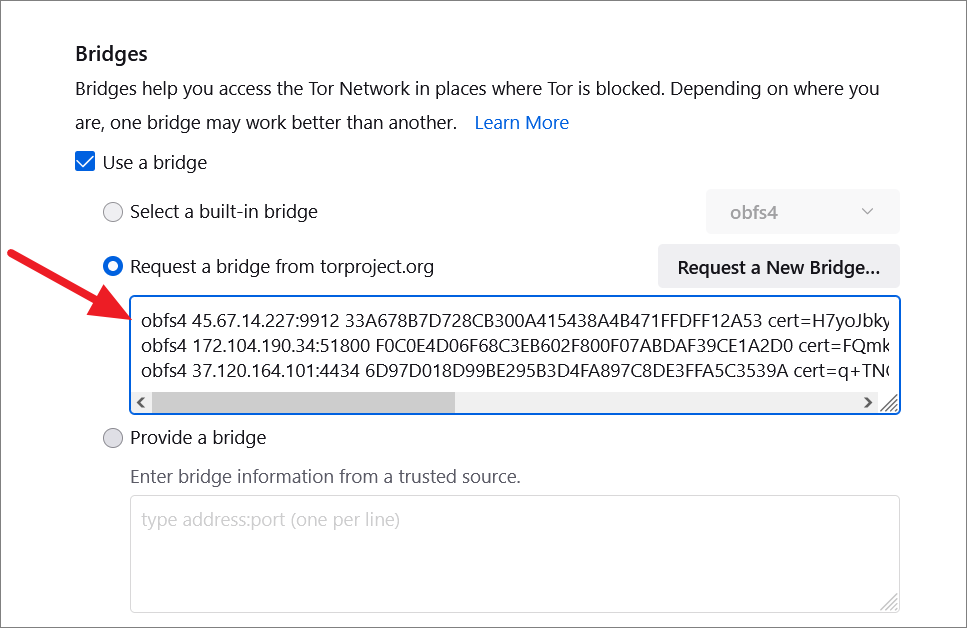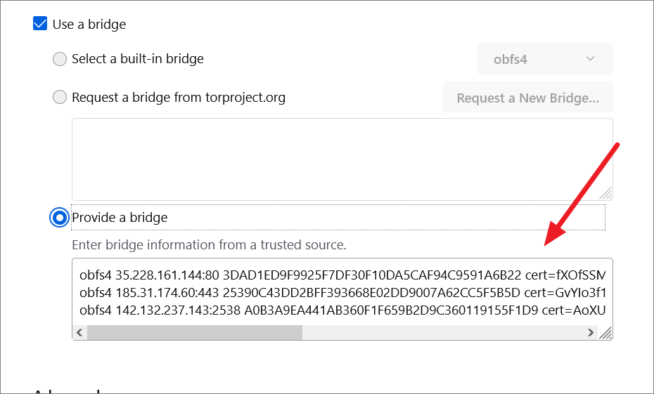 Then, paste the bridge lines in the ‘Provide a bridge’ box.