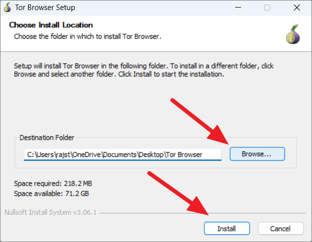In the Tor Browser Setup window, select the location where you want to install the Tor Browser. By default, the setup chooses your desktop location which is more convenient to use. But, if you want to choose a different install location, click the ‘Browse’ button and select another location.