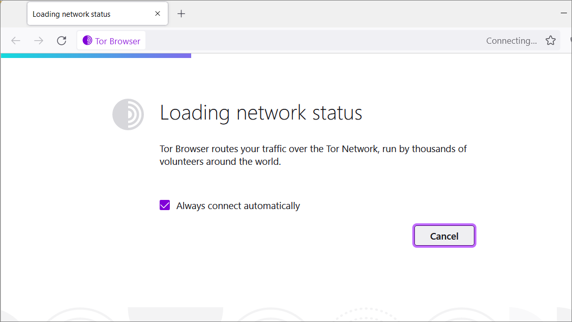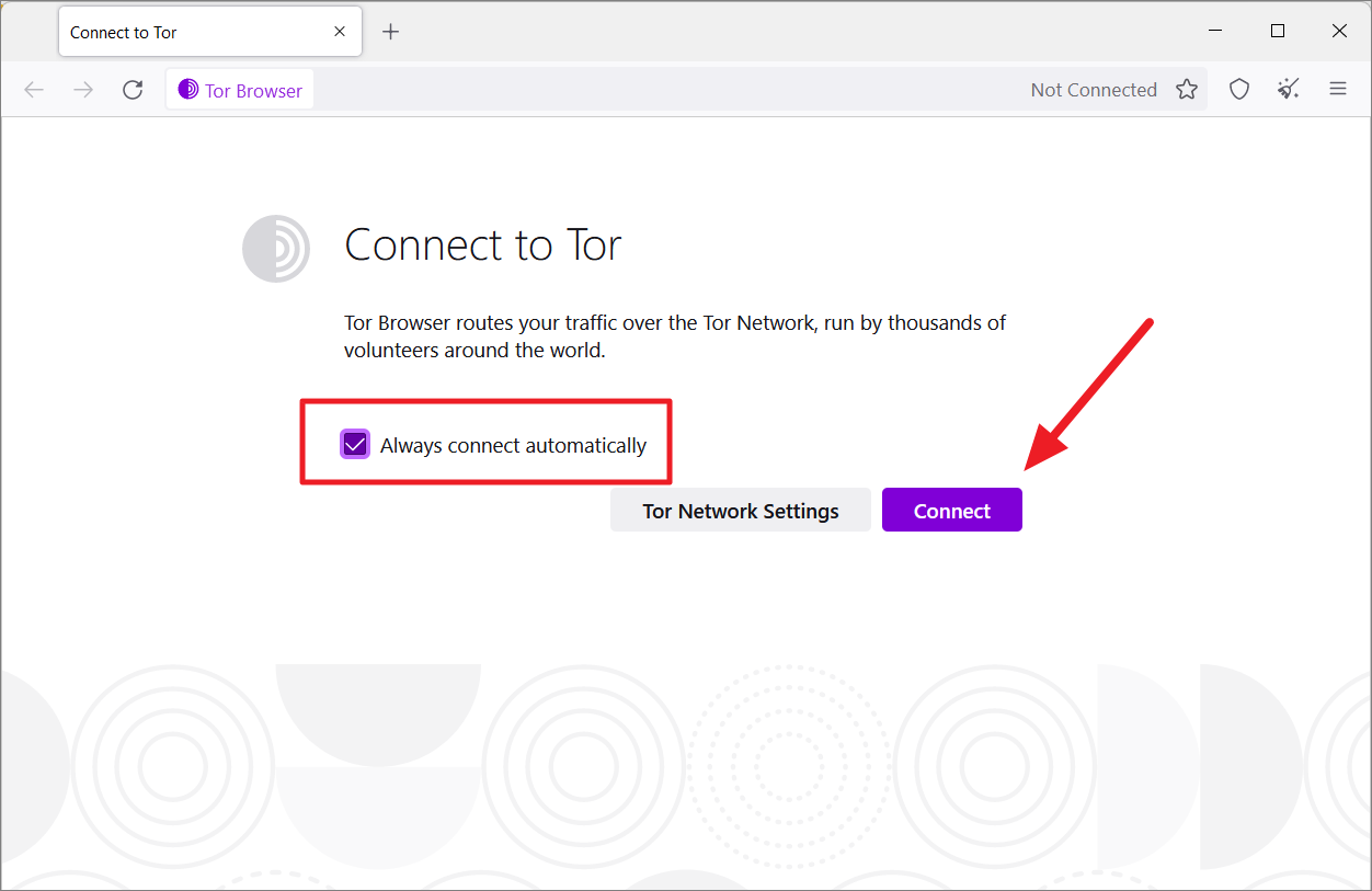 When Tor Browser starts for the first time, you’ll get a screen that allows you to connect to the Tor network. Here, select the ‘Always connect automatically’ option if you want the browser to automatically connect to the Tor network every time you start the browser. Then, click on the ‘Connect’ button to connect to the Tor Network.