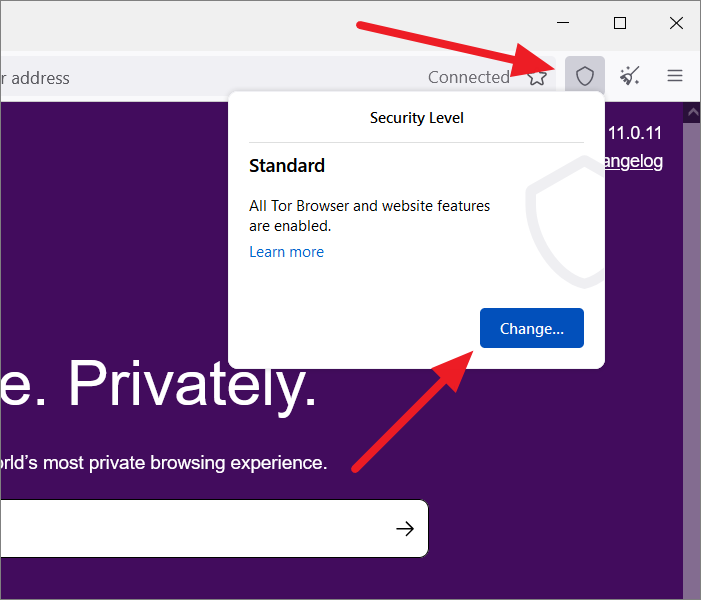 Tor browser has three levels of security with each having a different level of privacy, security, and usability – Standard, Safer, and Safest. By default, the Security level is set to ‘Standard’. But if you want to change it, follow these steps: