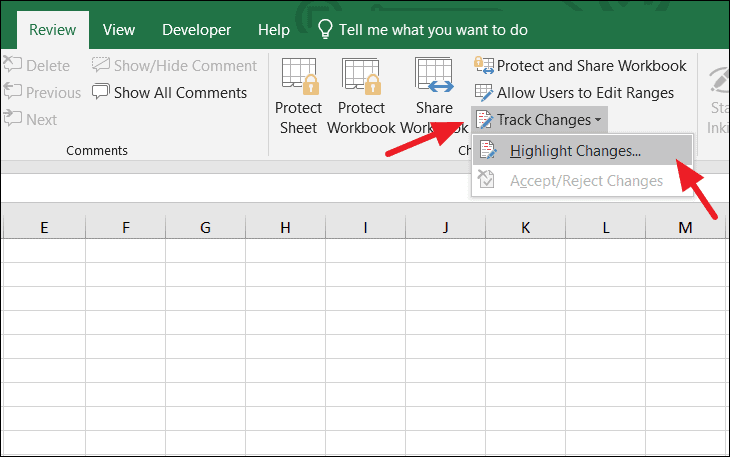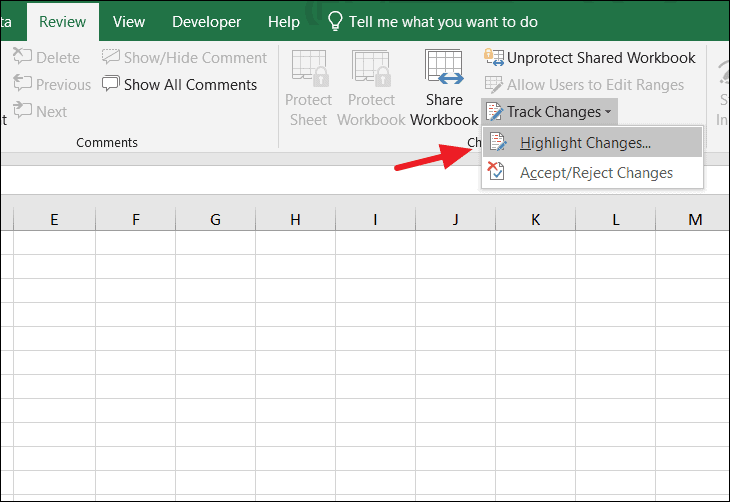 Step 1: Open your Excel workbook and navigate to the Review tab on the ribbon. Click on Track Changes, and from the drop-down menu, select Highlight Changes.