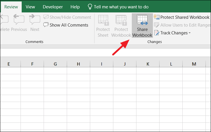 Step 7: Go back to the Review tab and click on Share Workbook.