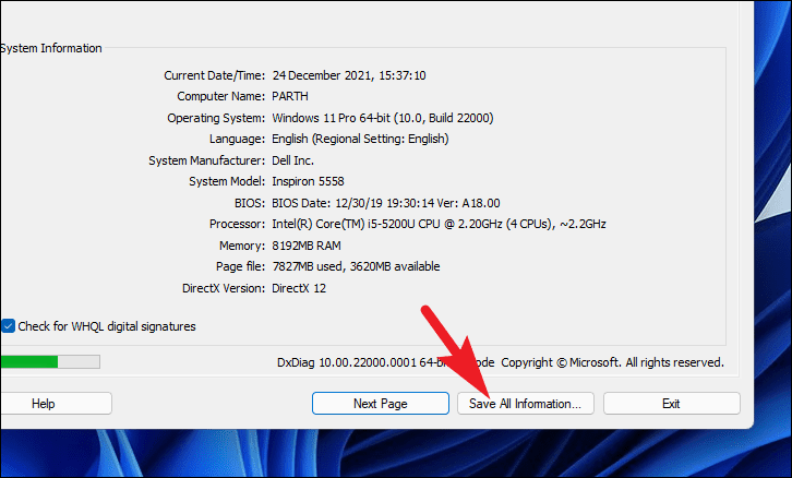 Step 1: Press Windows + R to open the Run dialog box. Type dxdiag and press Enter to launch the DirectX Diagnostic Tool.