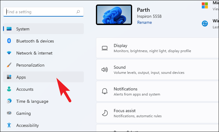 Step 4: To enable wireless display on your PC, you might need to install the feature. Go to Settings, then click on Apps.