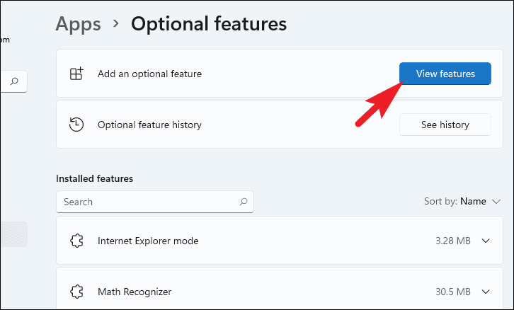 Step 5: Select Optional features, then click on View features next to Add an optional feature.