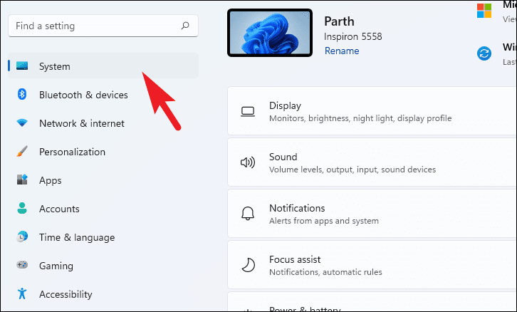 Step 3: In the Settings window, click on System, then select Display.