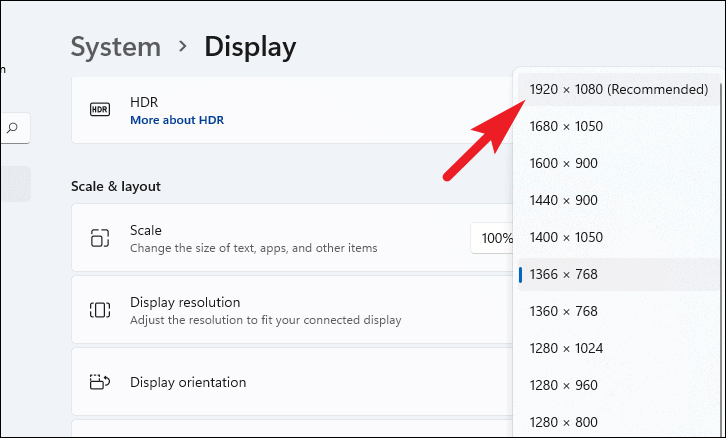 Step 4: In the Scale & layout section, click on the dropdown menu next to Display resolution. Choose the recommended resolution or the one that matches your TV's native resolution.