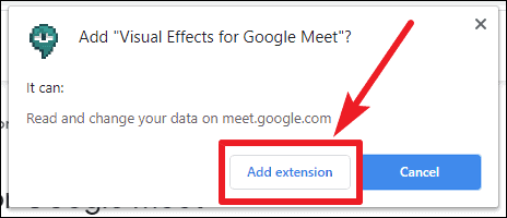 Step 3: A confirmation dialog will appear. Click 'Add extension' to confirm the installation. The extension icon will be added to your browser's toolbar and will activate when you use Google Meet.
