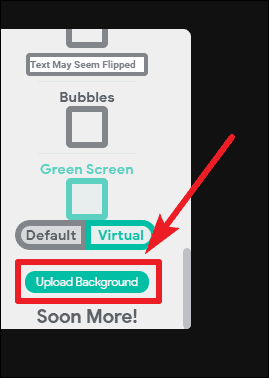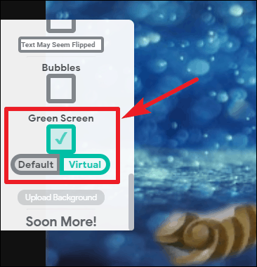 Step 5: After uploading, check the 'Green Screen' effect to apply the background. Select 'Default' if you have a physical green screen setup, or 'Virtual' if you do not.
