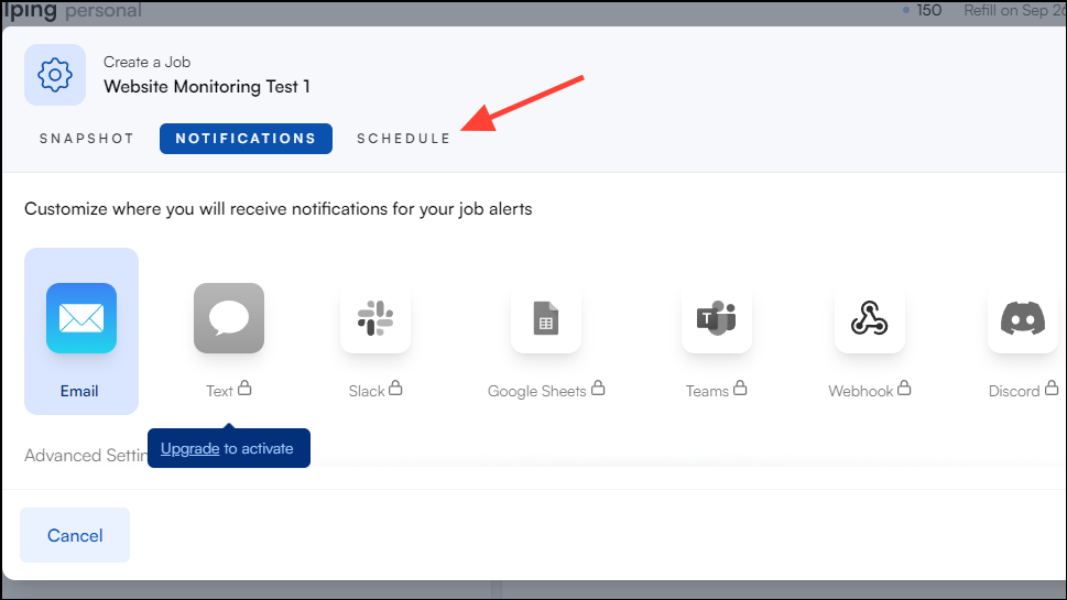 - If you want, you can add more email addresses in the Email option where you want notifications to be sent, otherwise click on the 'Schedule' option at the top.