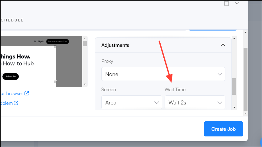 - Wait for a few seconds until the tracking tool gets information about the website, which will appear in the 'Snapshot' section. Check that the website appears correctly with all elements. If the page takes a lot of time to load, you can scroll down and use the 'Wait' feature present in the 'Adjustments' section below 'Perform Actions'.
