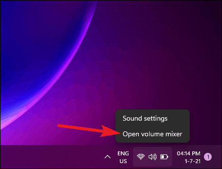 Step 2: In the context menu that appears, click on Volume Mixer.