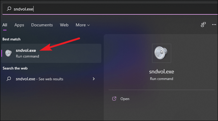 Step 2: Type sndvol.exe into the search bar or Run dialog box, then press Enter.