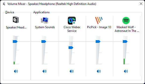 The classic Volume Mixer will open, displaying separate volume controls for each application.
