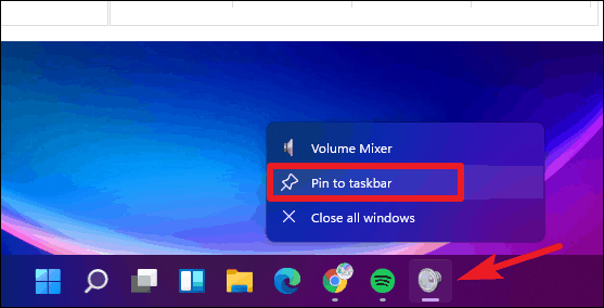 Step 3: On the taskbar, right-click the Volume Mixer icon and select Pin to taskbar to keep it accessible.