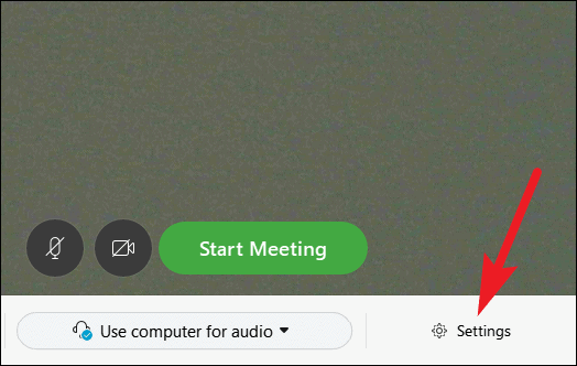 To enable Music Mode before joining a meeting, click on the ‘Settings’ icon on the bottom right corner of the preview window.