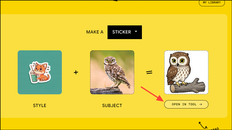 - After selecting a style, you can drag and drop an image you want to use as a subject in the box in the center. Alternatively, click on the box and upload an image from your computer.