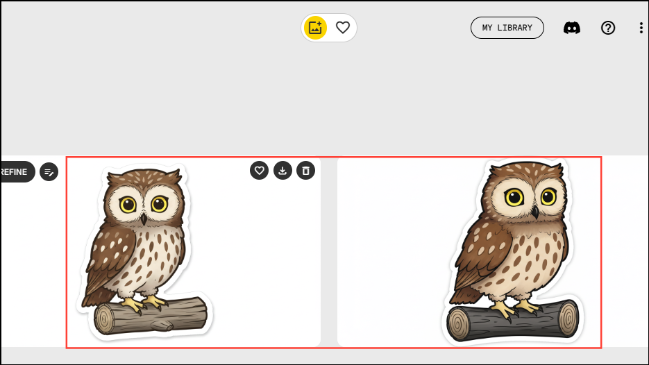 - Now, you can choose from two variants of the generated image and refine it. Click on any of the two images to select it.