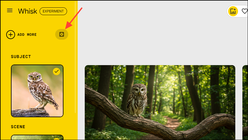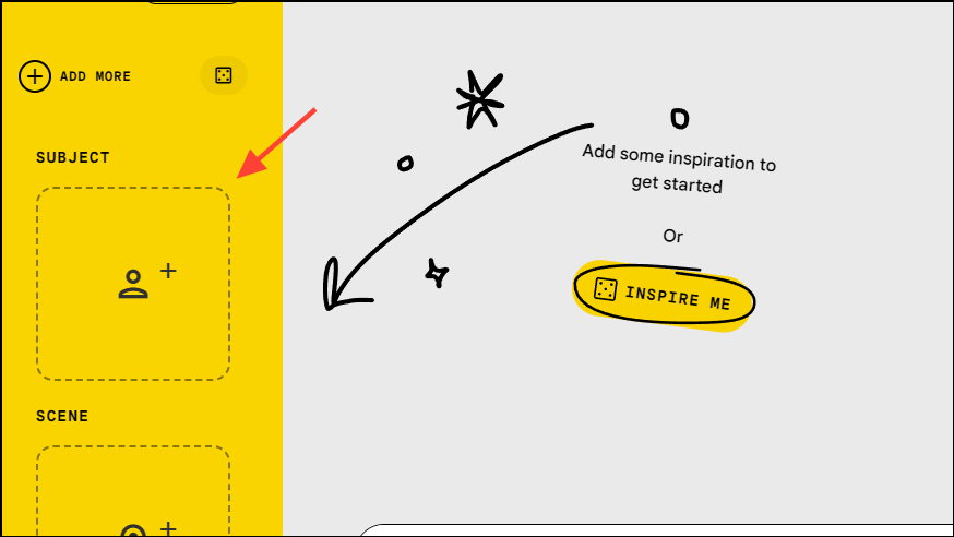 - When uploading images that the AI will use as references, you can click on the 'Dice' icon to use randomly generated images for the subject, scene, and style.