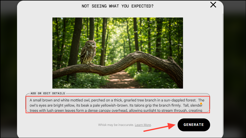 - Now you can see the prompt that Gemini has created and edit it. Once you are done, click on the 'Generate' button to refine the image.
