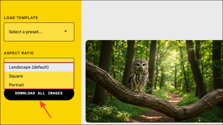 - Similarly, you can change the aspect ratio of the image to be generated using the 'Aspect Ratio' dropdown. You can also download all generated images using the 'Download All Images' button.