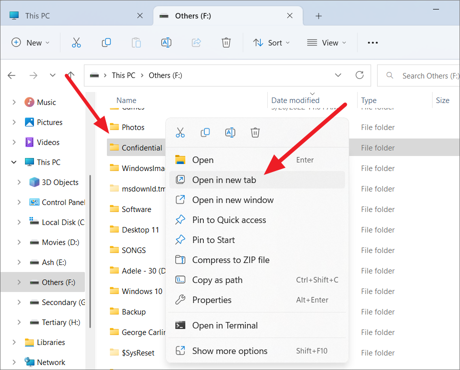 Open a Folder in a New Tab Using Context Menu