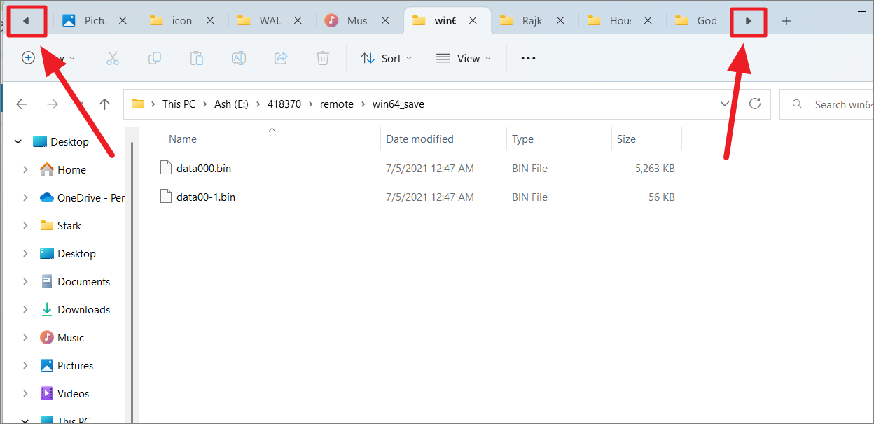 Switching Between File Explorer Tabs