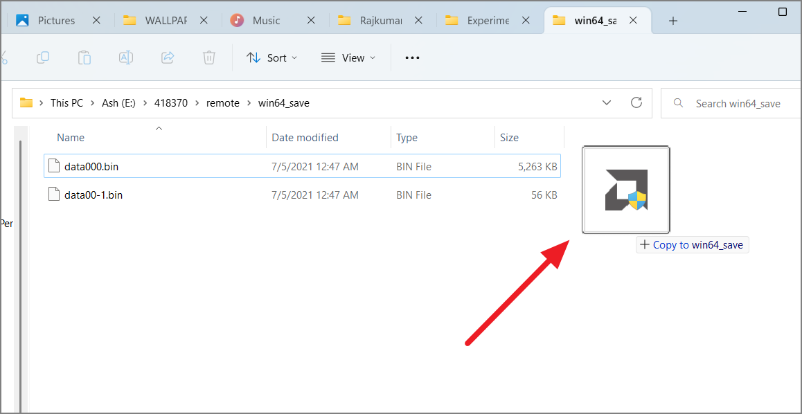 Copy Files Between File Explorer Tabs