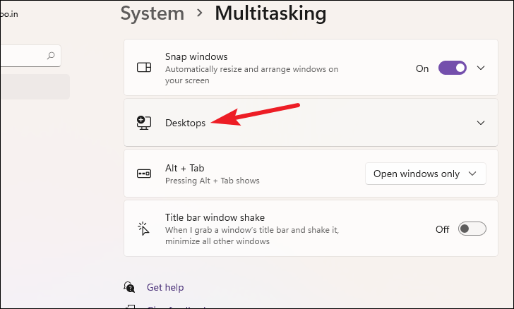 - Under Desktops, adjust the settings for taskbar and Alt+Tab behavior.