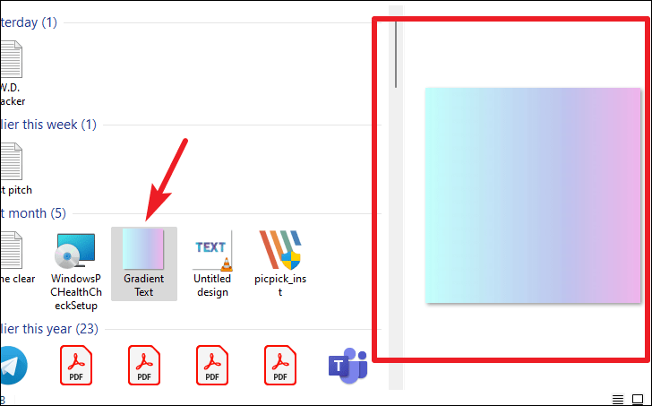 The Preview pane allows you to view a file's contents without opening it. Toggle it on from the Show menu to enable this feature.