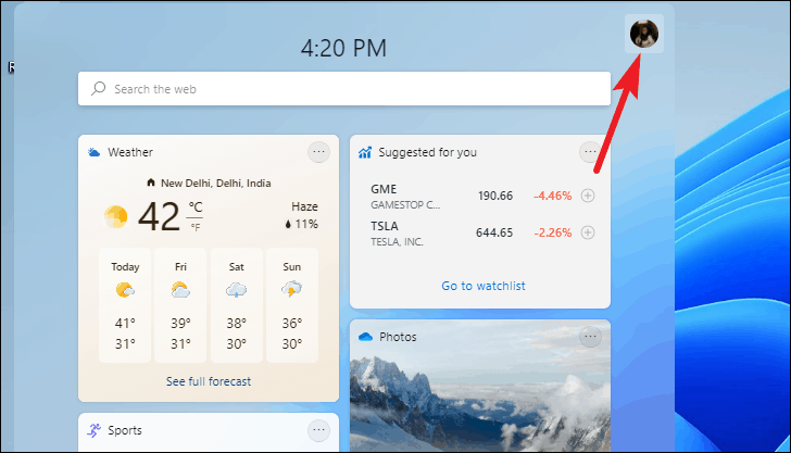 - Click your profile icon in the top-right corner of the Widgets panel.