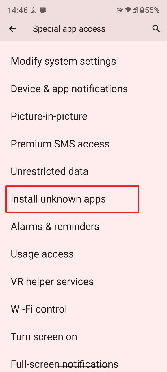 - Next, tap on 'Install unknown apps'.