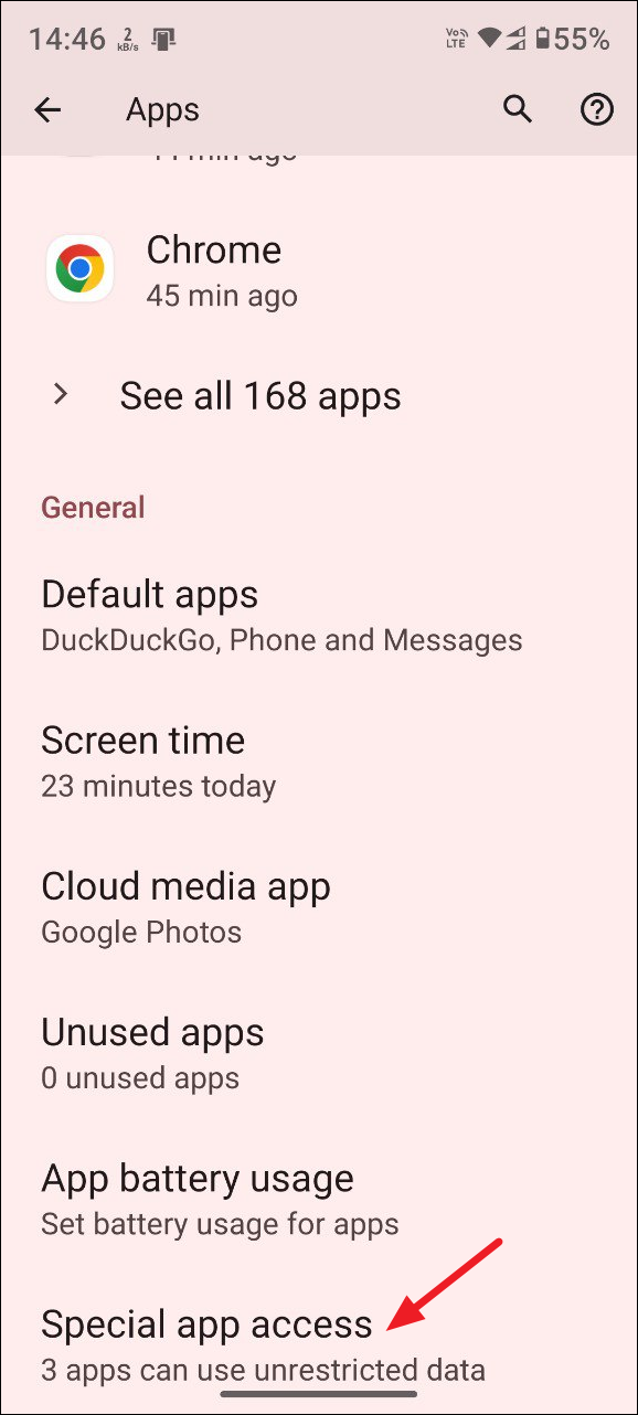 - Then tap on 'Special app access'.
