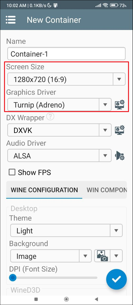 - Now, you need to set a resolution. It is best to set a low resolution like 800x600 if you are running Winlator on an older or low-end device. You also need to select your Graphics Driver here. For MediaTek devices or any other GPU, select VirGL (Universal), while Turnip (Adreno) is the driver for Snapdragon devices.