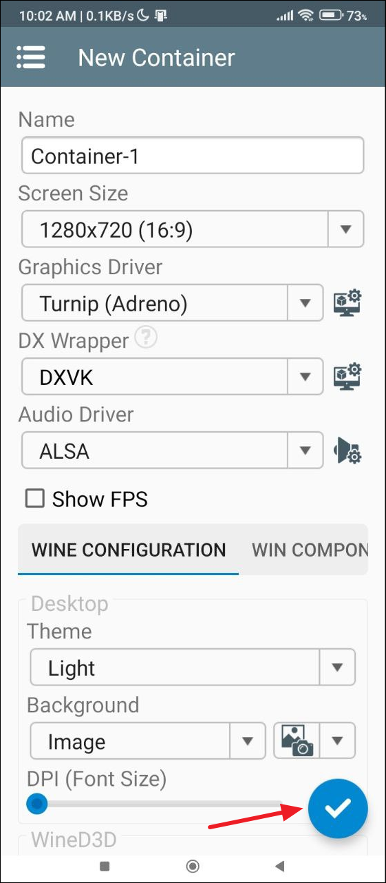- When you open Winlator for the first time after installing it, it will download some additional files and dependencies. Wait for the process to complete and then tap on the '+' icon.