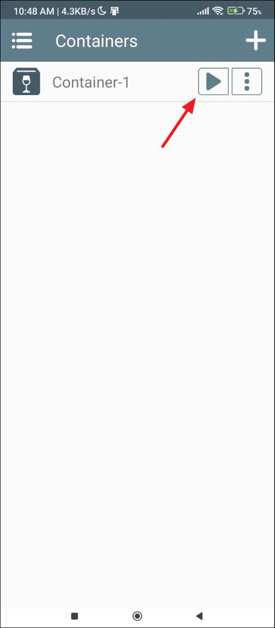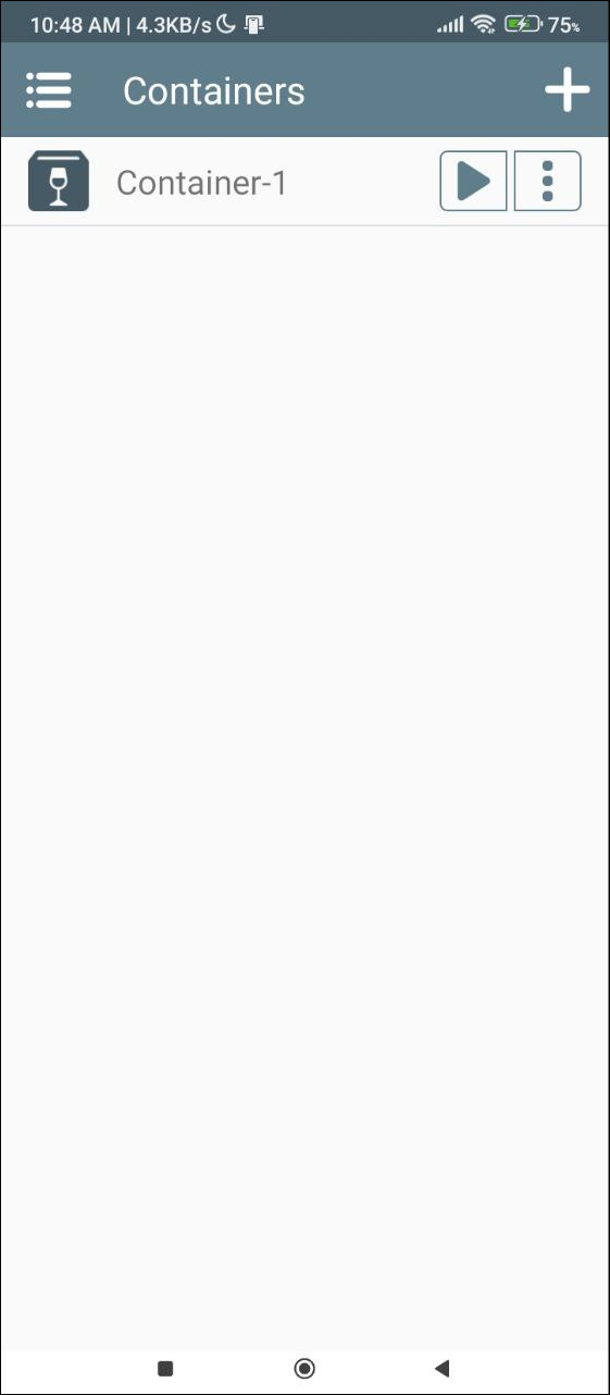 - Once the Container is set up, a 'Play' button should appear on the right. However, before you can use it, you need to copy the Windows application files you want to run on your device.