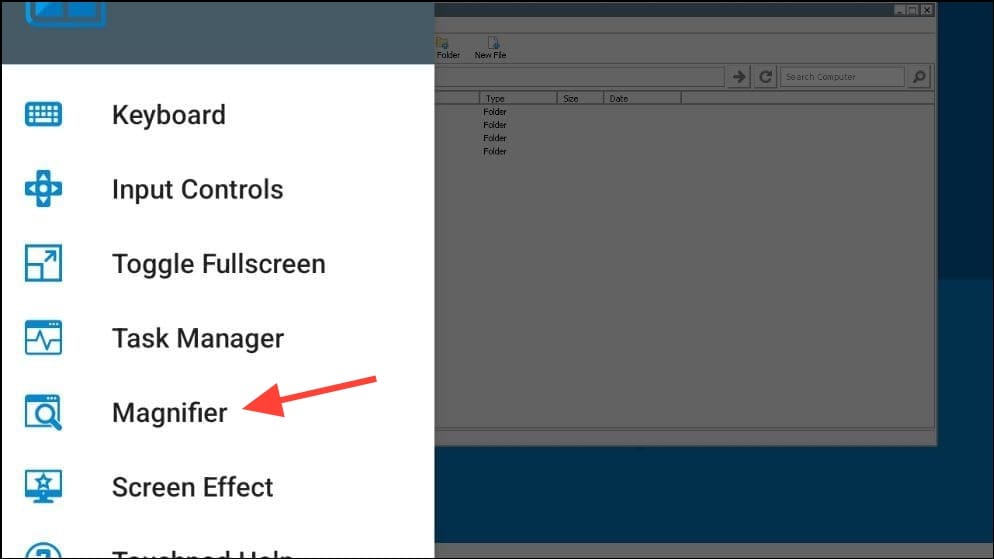 - Winlator will now show you a Windows-like environment with a file manager and a desktop which you can navigate using your finger or a connected mouse. If you have trouble doing so, swipe up from the bottom and tap on 'Magnifier' to increase the size of the elements on the screen.