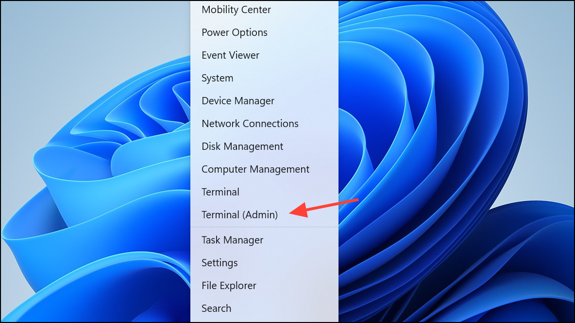 Step 1: Open PowerShell or Command Prompt with administrator privileges. To do this, right-click the Start menu and select "Terminal (Admin)" or "Command Prompt (Admin)".