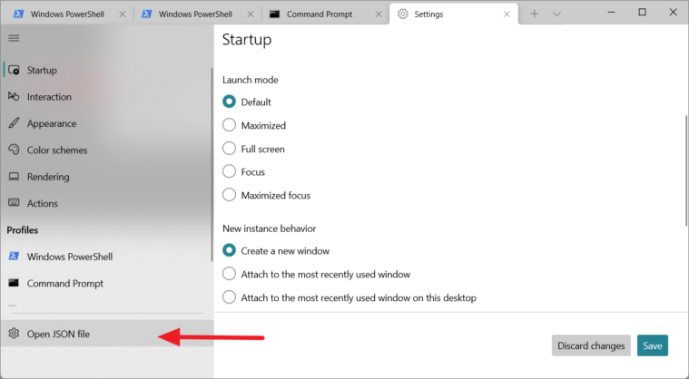Windows Terminal has two JSON file that holds settings for the application. One is ‘defaults.json’ which you cannot edit/modify, but you can use it as a reference to know the default configuration. And the other is ‘settings.json’ which you can edit to customize the app.