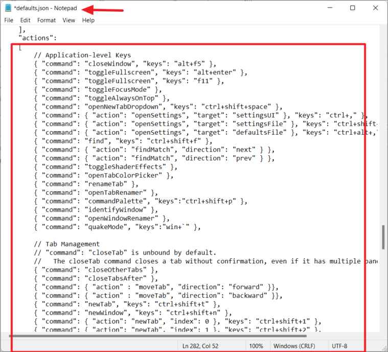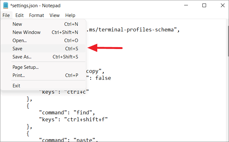 As we mentioned before, Windows Terminal is an open-source application, you customize it however you want, which includes the keyboard shortcut keys (Key bindings). You can add new hotkeys and customize all the pre-existing hotkeys in the Windows Terminal by editing the ‘settings.json’ file.