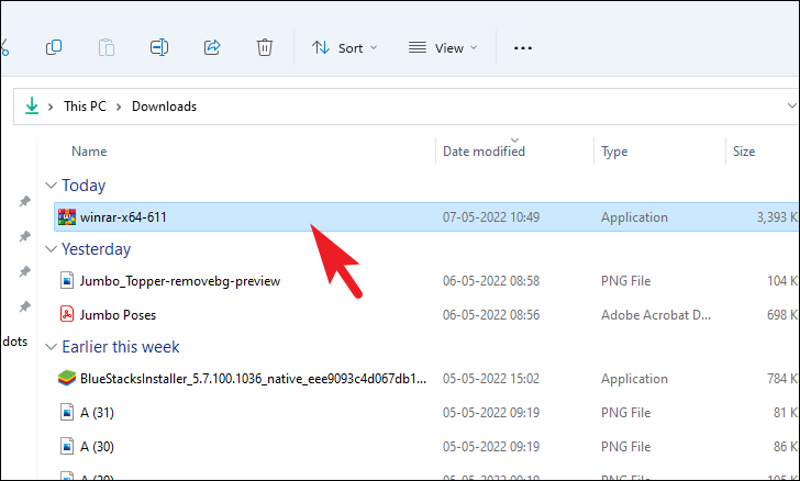 Once downloaded, head to the default downloads directory from the File Explorer window. Then, double-click on the .EXE file you just downloaded to run the installer package on your PC.