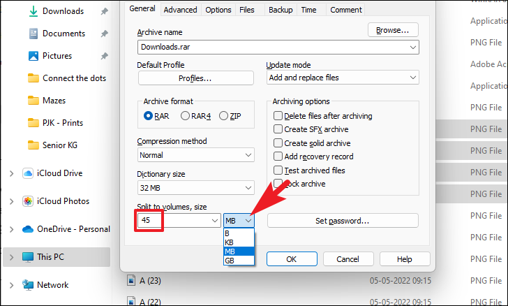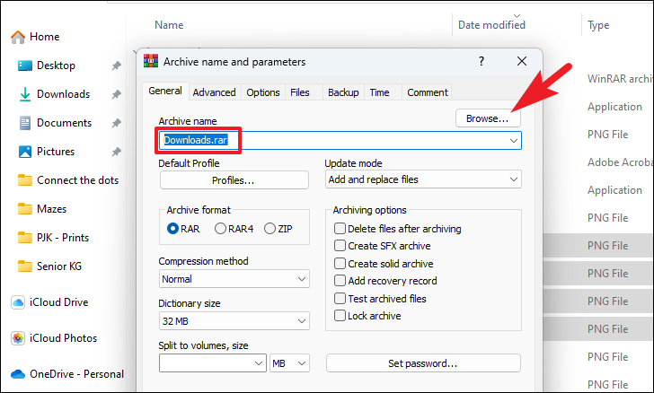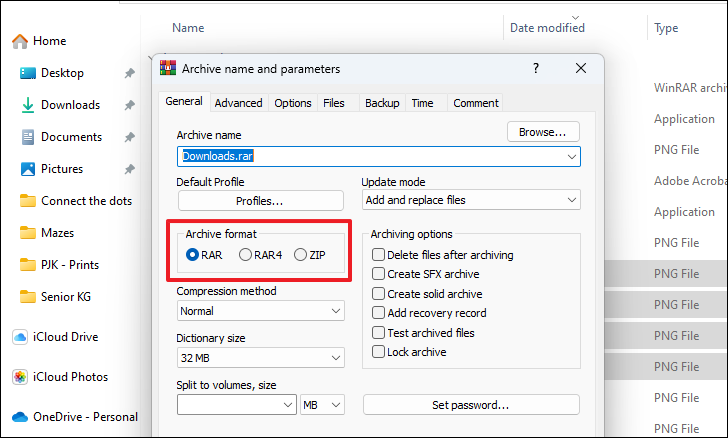After that, you will need to select the type of archive. WinRAR supports either the ‘ZIP’ format which offers maximum compatibility and can be opened by a majority of operating systems themselves. Whereas RAR is a proprietary method and will require third-party software to unarchive the files. Under the ‘Archive format’ section, click on the radio button preceding the option required and useful for your use case.