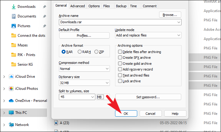 Once done, click on the ‘OK’ button to create an archive that follows the preferences set by you.