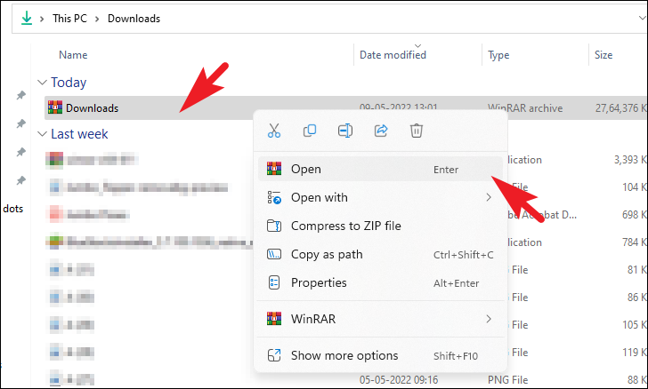 To extract only selected files from WinRAR, double-click on the compressed folder to view its contents of it.