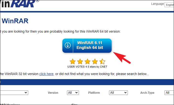 First, head to the win-rar.com/download web address and click on the ‘Download’ button present on the webpage. This will immediately initiate the download on your computer.