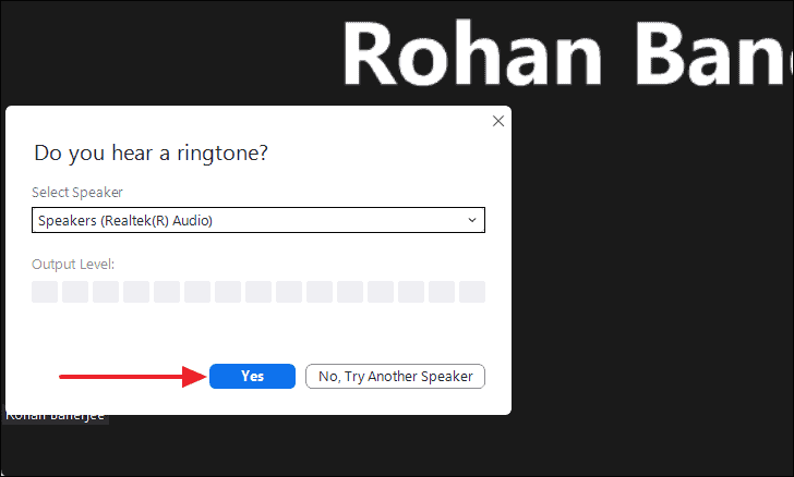 - Follow the prompts to test your speakers by listening for the test tone, and click Yes if you hear it.