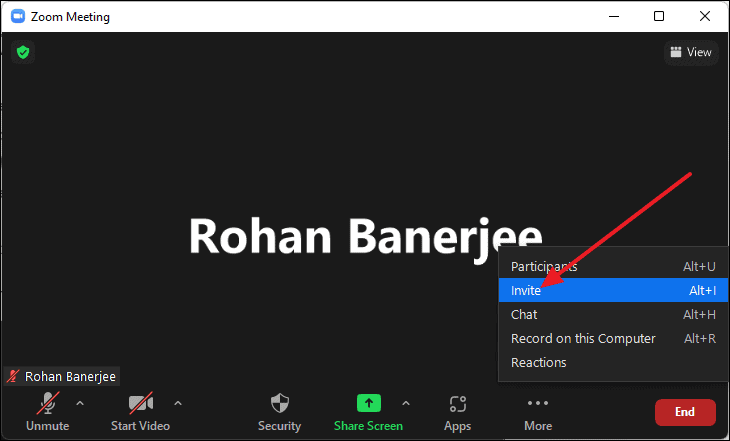 ALT+ion your keyboard or click on the Participants icon, then click on Invite.