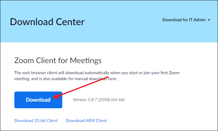 - Under Zoom Client for Meetings, click the Download button.