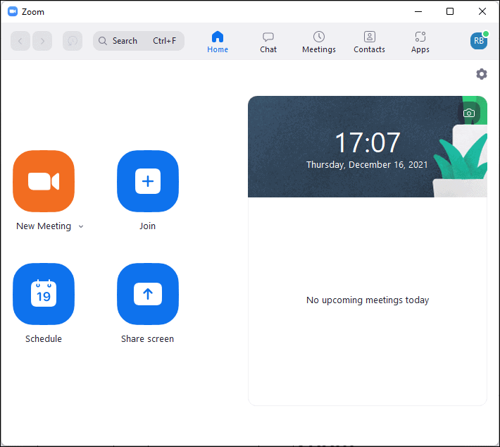 Once you sign in to the Zoom client, you'll see the home screen. From here, you can: